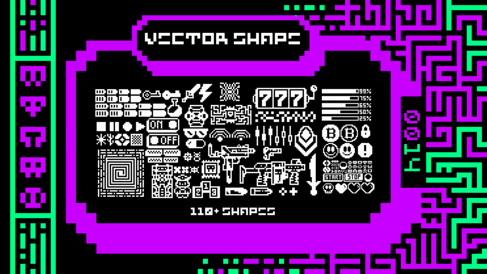 all the fonts and vector shapes that are here, of course, can't only be used in pixel art. This font will make any work more cool and interesting.
